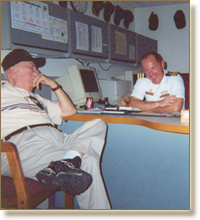 II veteran Norm Hartline is having a congenial conversation with Commander Harrington following formal ceremonies.