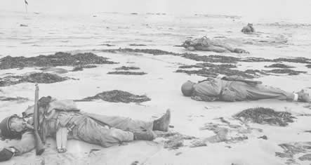 When Beachmaster Vaghi led his C-8 platoon ashore “Easy Red” Omaha Beach at 7:35 A.M. on D-Day, bodies of the dead and the dying littered the sand as far as the eye could see. The Army-Navy demolition teams, ashore since 6:33 A.M., were so badly decimated that only a few lanes were blown through beach obstacles and mines. With many casualties medically beyond help, Dr. Davey ordered his corpsmen to treat only injured personnel who could be saved. Soldiers and sailors were drowning in the surf and the initial phase of the invasion appeared to be a military disaster.